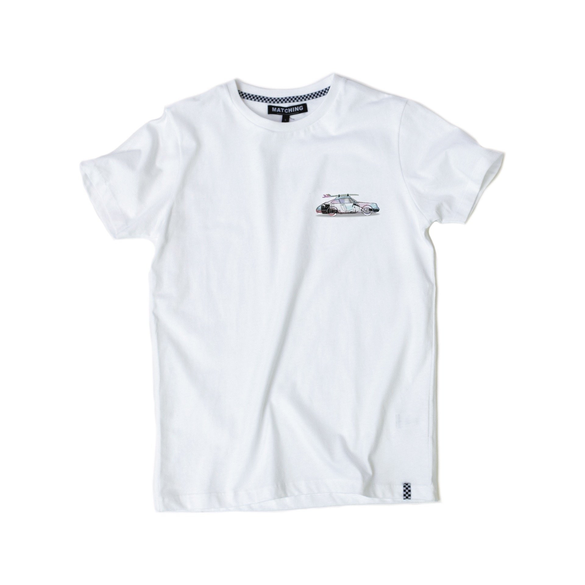 Charger son surf sur le toit de sa 911 et prendre la route pour un instant d'évasion, c'est ça l'esprit Matcing. T-shirt 100% coton 180g.